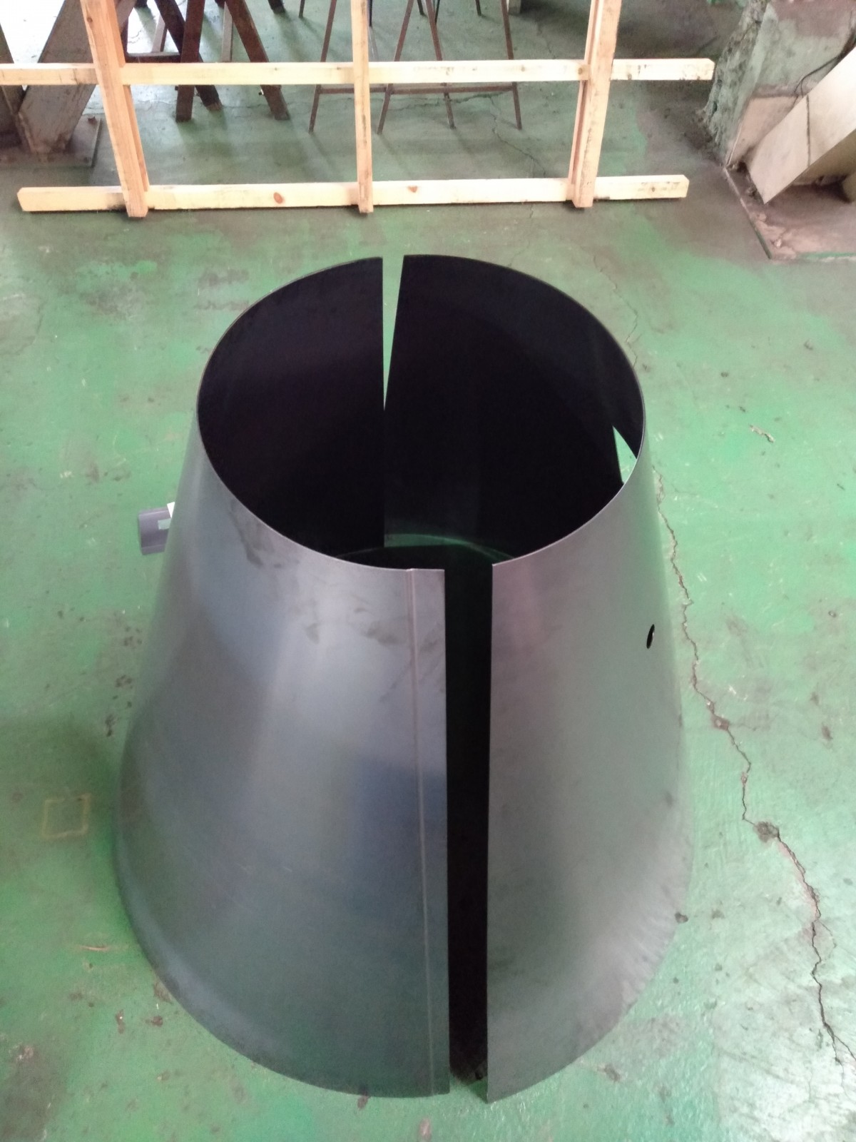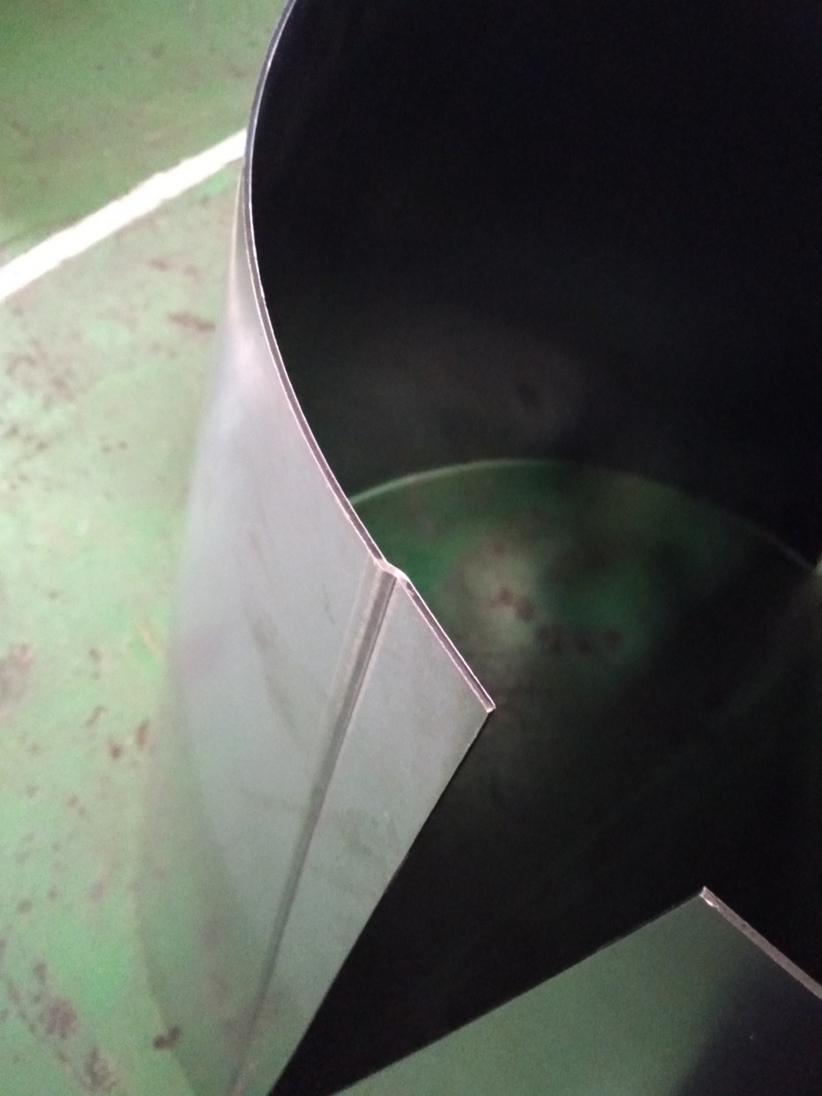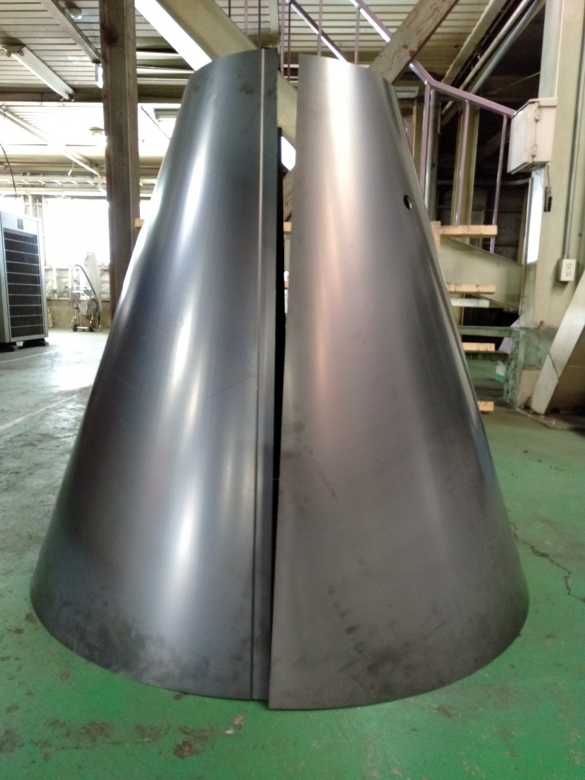 本加工後に左右を溶接するため高さ・幅・曲面のRと左右対称の仕上がり寸法が要求されます。